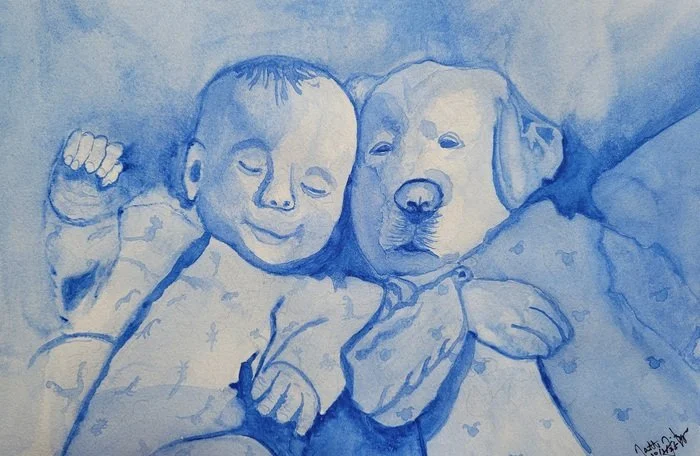 Puppy and Baby in Pajamas